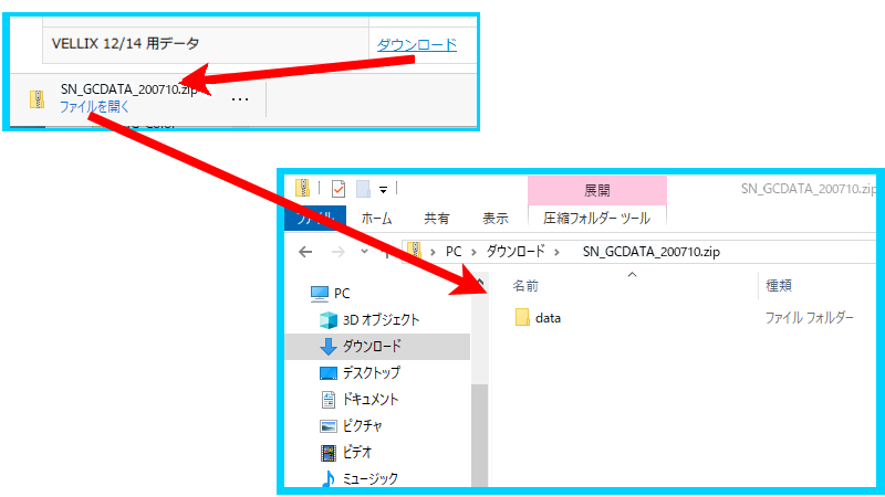 (SN_GCDATA_SMD_[日付].zip というファイル名になります)