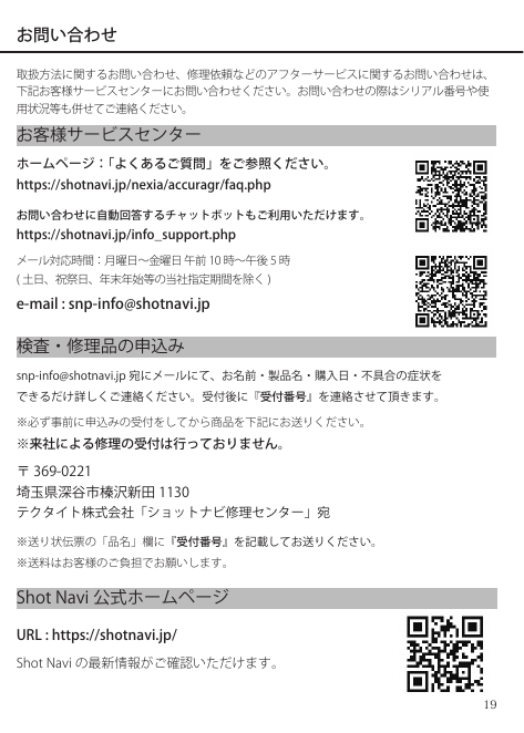 [Shot Navi Nexia] Accura GR 取扱説明書(PDFファイル)はこちら