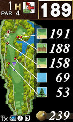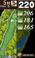 ナビの基本画面です。現在地からグリーンまでの距離を表示します。オートズーム機能を使えば現時点に応じて自動で地図がスクロールします。