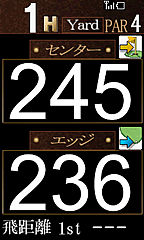 グリーンのセンター・エッジまでの残り距離だけを大きくシンプルに表示します。