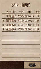 プレー履歴を参照すると保存されている履歴一覧が表示されます。コースを選択するとそのデータを閲覧、もしくは削除することができます。