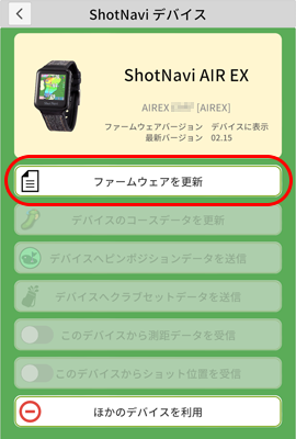 Shot Navi AIR EX (以下、本製品)のファームウェア更新には、スマートフォン用アプリ「Shot Navi 3DX」(以下、3DX)、もしくは「ShotNaviコースガイド」が必要です。