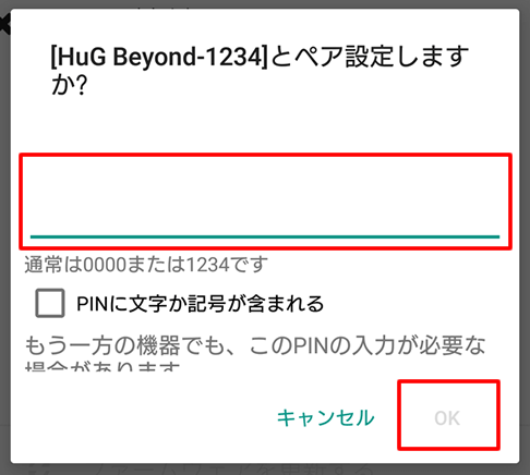 数字の入力を求められたら、HuG Beyondに表示された数字6桁(PINコード)を入力してOKを押します