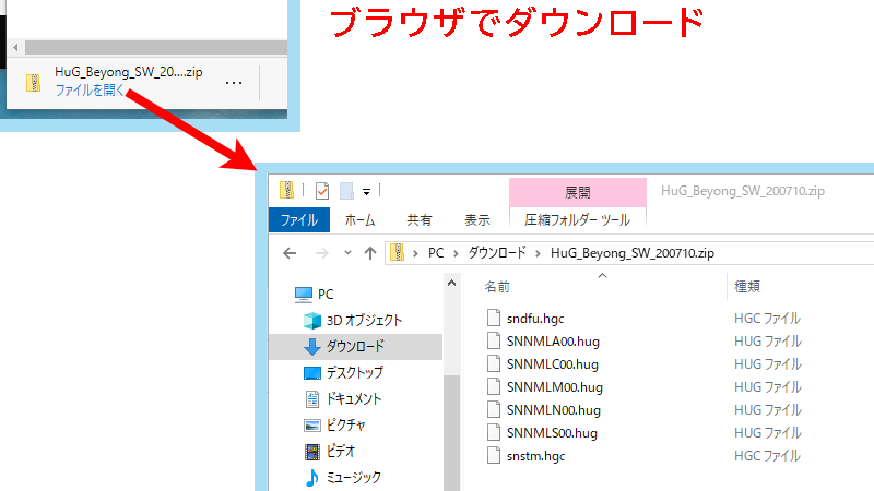 (HuG_Beyong_SW_[日付].zip というファイル名になります)