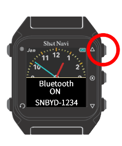 時計の画面になったら、右上ボタンを長押しして、Bluetooth機能をONにします