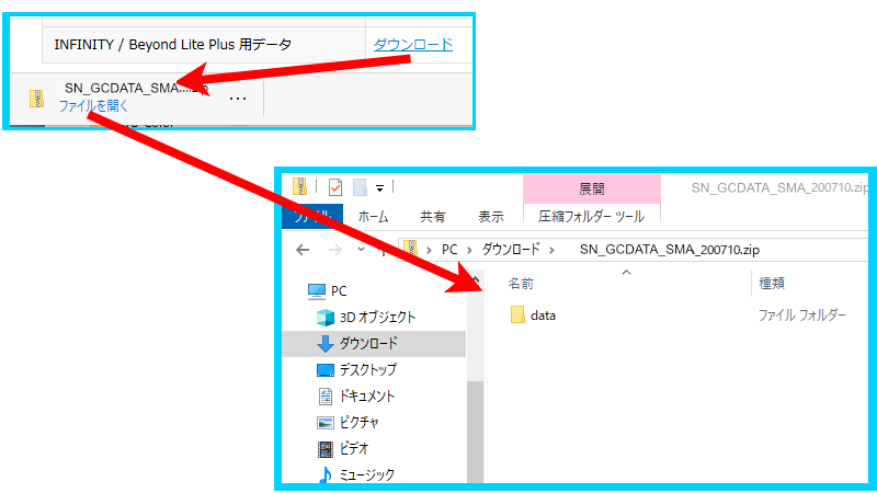 (SN_GCDATA_SMA_[日付].zip というファイル名になります)