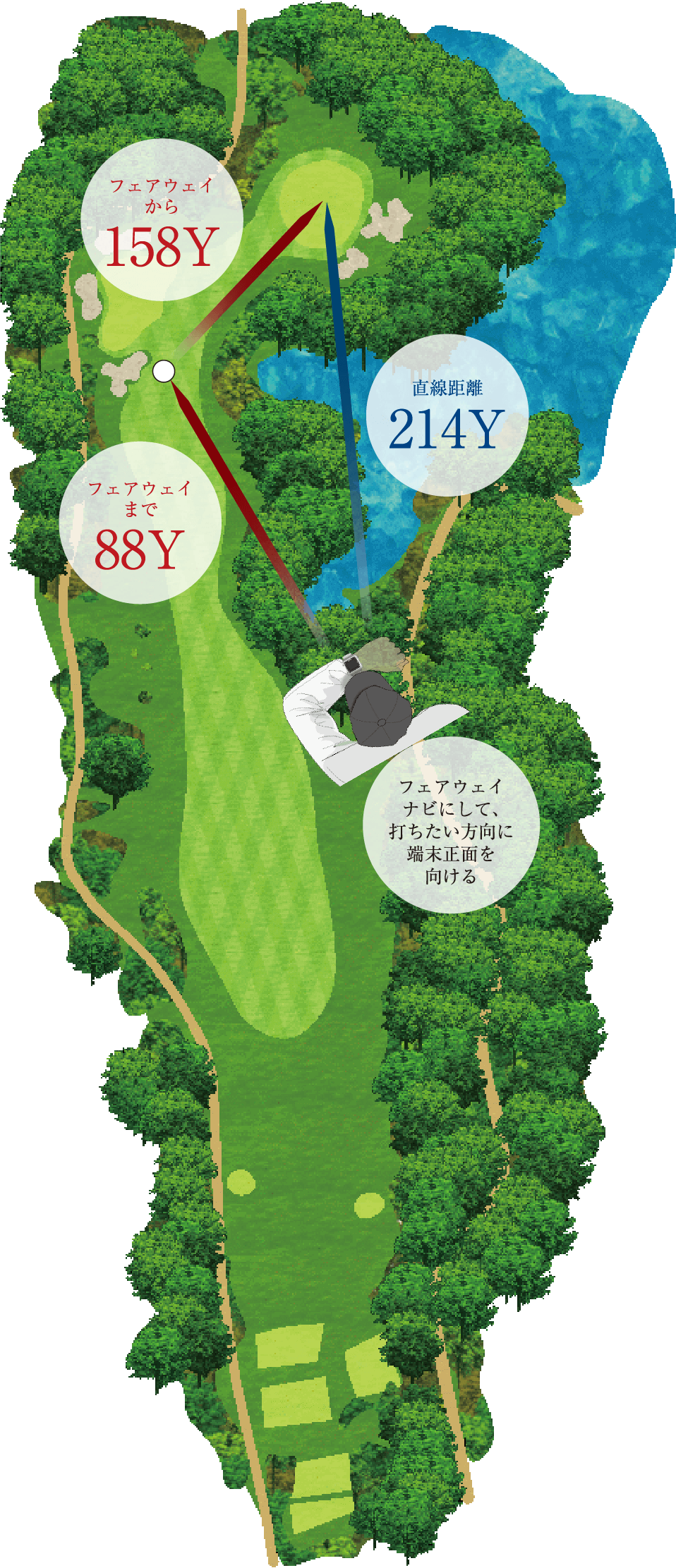 FWナビ画面やプレー情報のフライオーバーの画面では