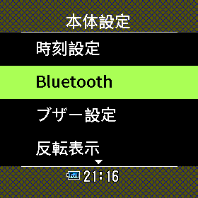 時計画面で左下ボタンを押してメインメニューを出し、「本体設定」から「Bluetooth」を選択します。