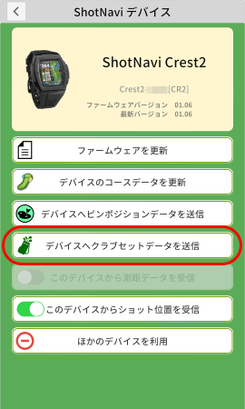 端末でクラブセットの値が送信され、ナビ時の推奨番手に反映されます。