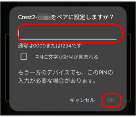 ペア設定を開始すると、端末側にPINコードが表示されます。