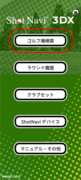 「ゴルフ場検索」をタッチして、ピンポジションを設定したいゴルフ場を選択し、ナビを開始します。