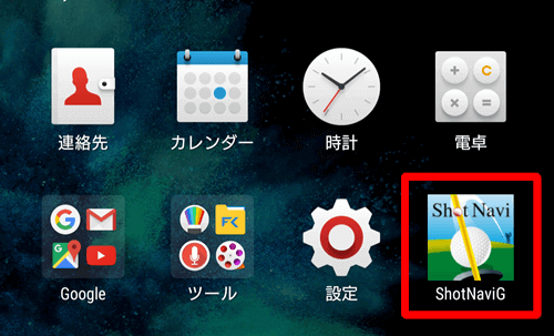 アプリの一覧から ShotNaviコースガイド(ShotNaviG) を起動します