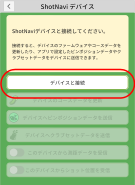 3DXを起動し、アプリのホーム画面のメニューから「ShotNaviデバイス」をタッチしてください
