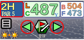 ホールの切り替えは左上のホール表示、もしくは登録ボタンの横の三角ボタンで次/前のホールに移動します。