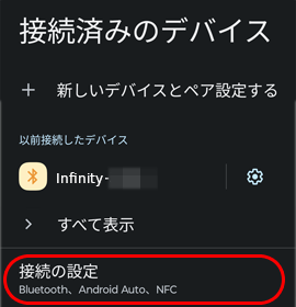 ※以降画像はInfinityと接続時のものです。端末名が違うだけで操作は同じです。