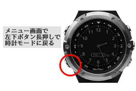 時計の画面になったら、右上ボタンを長押しして、Bluetooth機能をONにします