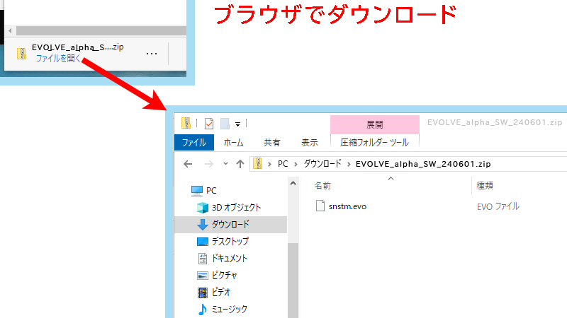 (EVOLVE_alpha_SW_[日付].zip というファイル名になります)