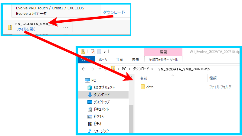 (SN_GCDATA_SMB_[日付].zip というファイル名になります)