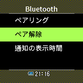 時計画面で左下ボタンを押してメインメニューを出し、「本体設定」から「Bluetooth」を選択します。