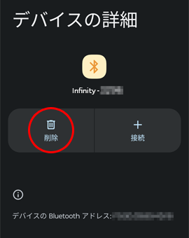 ※以降画像はInfinityと接続時のものです。端末名が違うだけで操作は同じです。