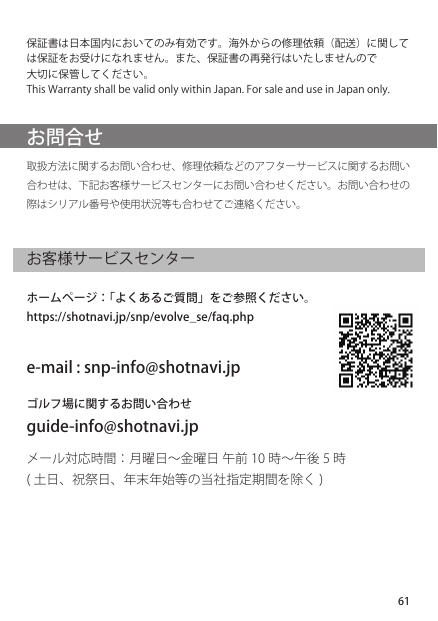 Shot Navi Evolve SE 取扱説明書(PDFファイル)はこちら