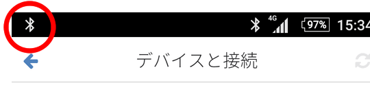 接続処理中に、画面左上にBluetoothのマークが出てきたら、指で画面上から下に向かってなぞ るようにし、通知バーを表示します