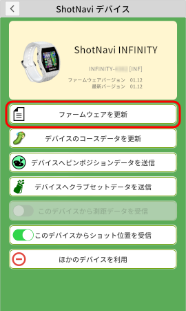 ShotNavi端末側のBluetoothをオンにした状態で、ホームメニューから「ShotNaviデバイス」をタッチします。