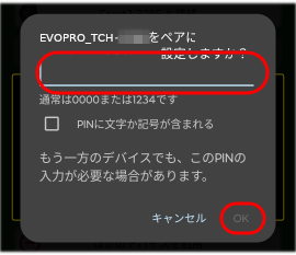 ペア設定を開始すると、端末側にPINコードが表示されます。