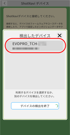 端末が見つかると、端末名が表示されます。端末名をタッチしてください