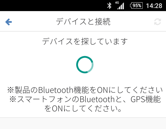デバイス検索を行っています。見つからなかった場合はタップして再検索してくださいの部分にタッチして再検索をお試しください