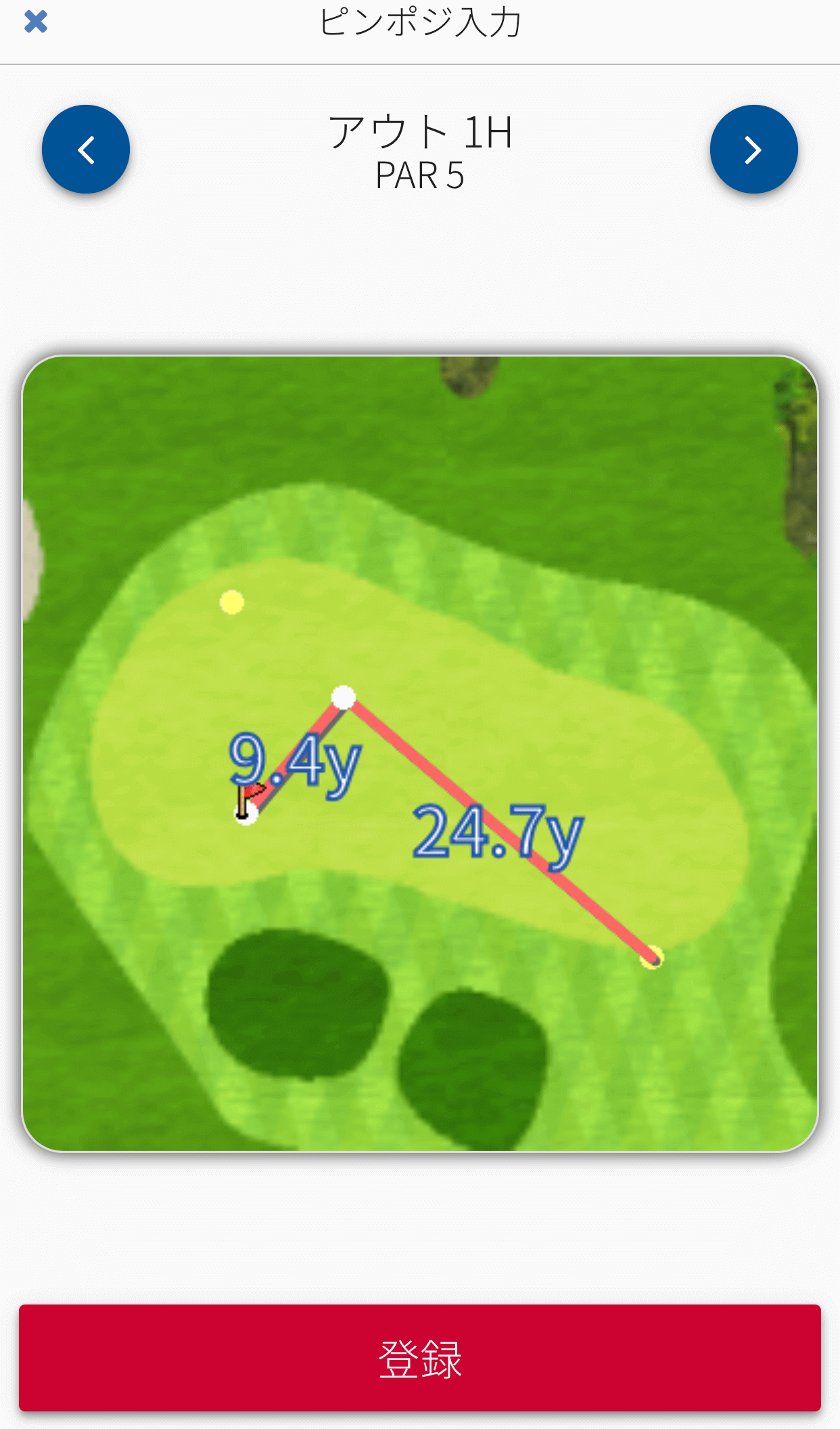グリーンにタッチすると、ピンポジを入力できます。