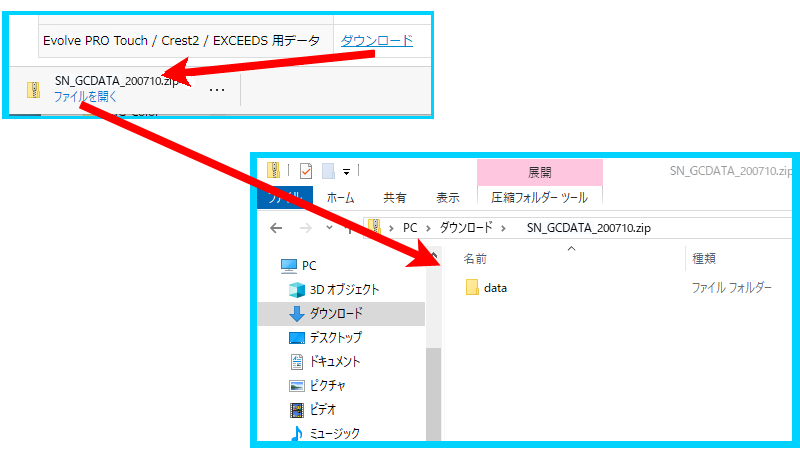 (SN_GCDATA_smb_[日付].zip というファイル名になります)