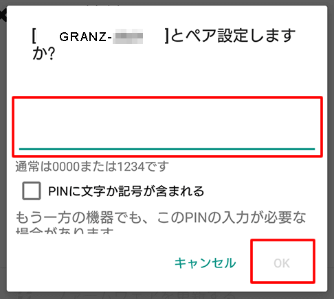数字入力の画面が表示されない場合は、再度通知バーを表示してペア設定リクエストをタッチすると表示されることがあります