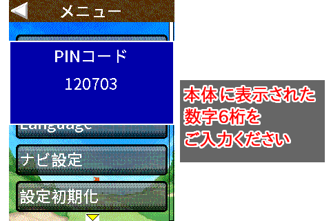数字の入力を求められたら、本体に表示された数字6桁(PINコード)を入力してOKを押します