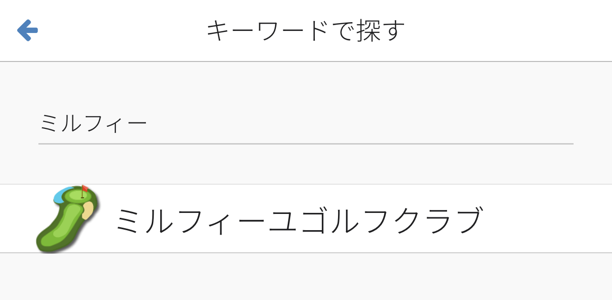 当日のピンポジデータを登録していると当該ゴルフ場名の下にピンポジのマークが表示されます。