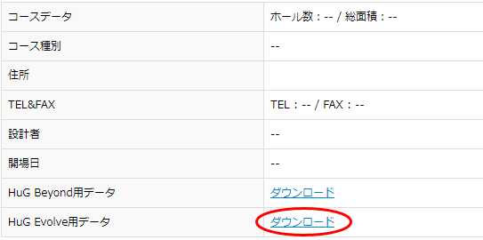 基本情報の「W1 Evolve/Crest/Granz用データ」のところの「ダウンロード」を押してください。 ゴルフ場データが圧縮されているZIPファイルをダウンロードします。