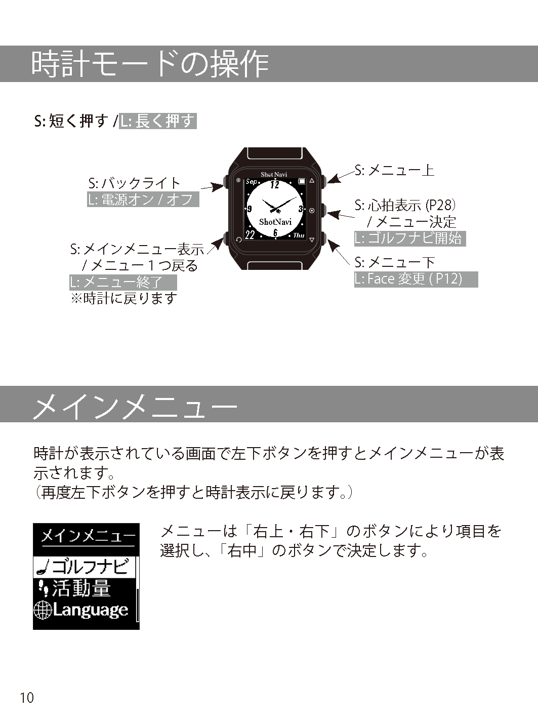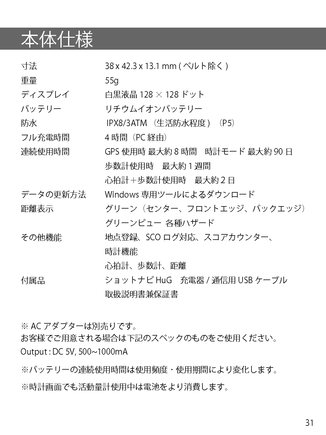 New心拍・活動量腕時計型タイプ 製品概要 操作ガイド データ更新 アプリ 取扱説明書取説 よくあるご質問FAQ Shot Navi HuG マニュアル Shot Navi HuG 取扱説明書(PDFファイル)はこちら Bluetooth接続がうまくいかない場合はこちらをご参照ください ShotNaviファミリー現行機種 AIR EX 驚愕の軽さ&タッチパネル Evolve PRO Touch 最大級画面&タッチパネル搭載! Infinity グリーンを攻めろ! Evolve PRO 業界最大サイズディスプレイ! Granz 最小・最軽量カラーハンディ AIR 驚愕の軽さ&タッチパネル超コンパクト Crest フラグシップモデル新色登場 Evolve 屋外での視認性抜群!大人気ベストセラー BeyondLite カラー液晶&リーズナブル大好評販売中 HuG Beyond 屋外での視認性抜群!ベストセラー Neo2hp コンパクトな手持ち型音声案内やデカ文字機能も V2 ワンプッシュで音声案内!簡単・ラクラク操作 Laser Sniper ELUA サブLCD搭載高速計測、広視野ファインダー Voice Laser Red Leo 赤色OLEDで視認性抜群多数のプロが使用中 Laser Sniper nano 世界最小・最軽量級大好評販売中! Voice Laser Leo 音声操作で手ブレを軽減1000Y計測、高速測量 X1 Fit2 1000 手のひらにフィット!コンパクトながら1000Y計測