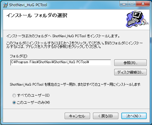 Shot Navi HuG PC Toolのインストールが開始されます。画面に従い、インストールを完了してください。