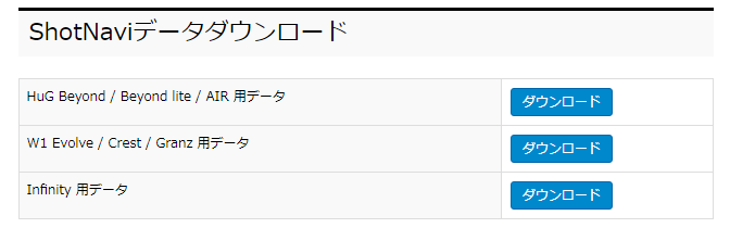基本情報の「Infinity用データ」のところの「ダウンロード」を押してください。 ゴルフ場データが圧縮されているZIPファイルをダウンロードします。