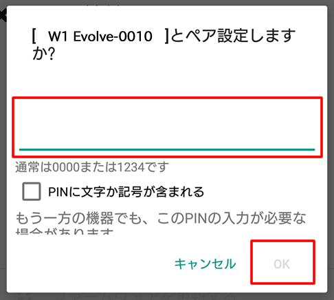 数字の入力を求められたら、本体に表示された数字6桁(PINコード)を入力してOKを押します