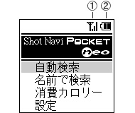 - 1. 自動検索 を選択すると、GPS で測位した位置が本体内部に収録されているゴルフコースのエリアに入るとゴルフコースを自動的に検出します。GPSの測位には数秒~2・3分程度かかる場合があります。