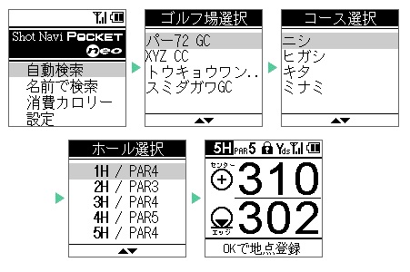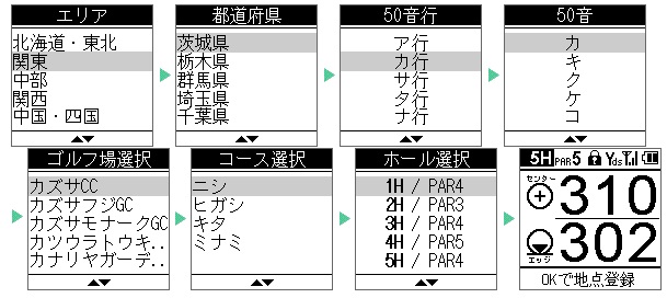 - 2. ゴルフ場選択 → コースを選択 → ホール選択