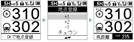 - 3. 地点登録を完了すると「飛距離表示」に移行します。
