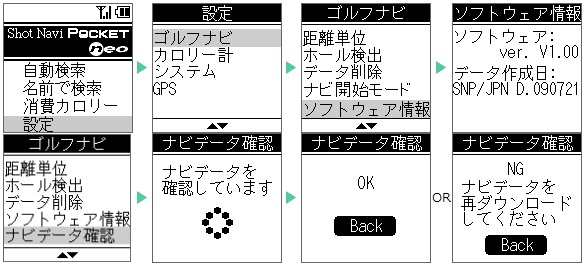 BACK ボタンで戻り ナビデータ確認 を選択します。約1分でチェックが終わります。 -