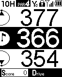 NEOでもおなじみの現在位置からのグリーンまでの距離を表示します。画面が縦に広がった分、フロント、センター、バックまでの各々の距離を即座に表示ます。