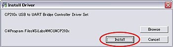 USBドライバーのインストール先の確認ウインドウが表示されます。