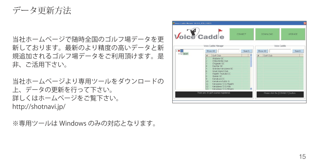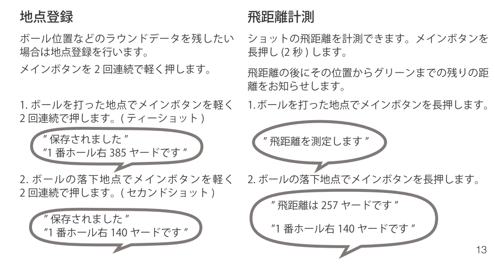 音声タイプ 製品概要 取扱説明書取説 よくあるご質問FAQ Shot Navi Voice Caddie マニュアル Shot Navi Voice Caddie の取扱説明書(PDFファイル)はこちら 更新方法はこちらをご覧ください ShotNaviファミリー現行機種 AIR EX 驚愕の軽さ&タッチパネル Evolve PRO Touch 最大級画面&タッチパネル搭載! Infinity グリーンを攻めろ! Evolve PRO 業界最大サイズディスプレイ! Granz 最小・最軽量カラーハンディ AIR 驚愕の軽さ&タッチパネル超コンパクト Crest フラグシップモデル新色登場 Evolve 屋外での視認性抜群!大人気ベストセラー BeyondLite カラー液晶&リーズナブル大好評販売中 HuG Beyond 屋外での視認性抜群!ベストセラー Neo2hp コンパクトな手持ち型音声案内やデカ文字機能も V2 ワンプッシュで音声案内!簡単・ラクラク操作 Laser Sniper ELUA サブLCD搭載高速計測、広視野ファインダー Voice Laser Red Leo 赤色OLEDで視認性抜群多数のプロが使用中 Laser Sniper nano 世界最小・最軽量級大好評販売中! Voice Laser Leo 音声操作で手ブレを軽減1000Y計測、高速測量 X1 Fit2 1000 手のひらにフィット!コンパクトながら1000Y計測