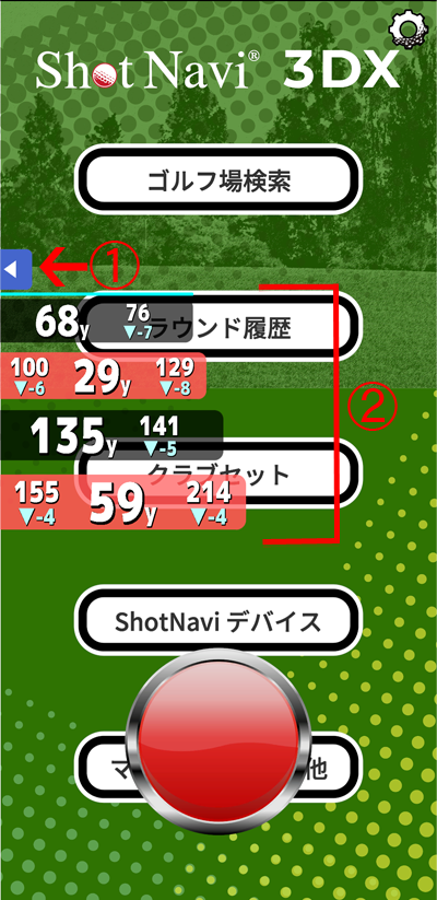 気温情報などを表示するには、アプリでプレーするゴルフ場のナビを開始している必要があります。
