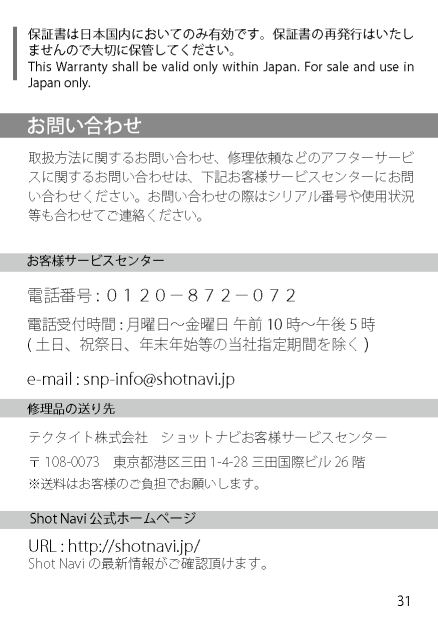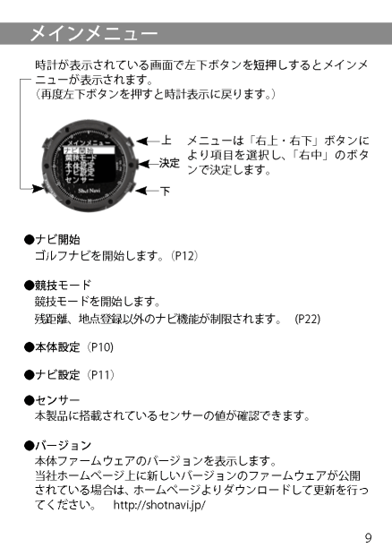 New腕時計型タイプ 製品概要 データ更新 取扱説明書取説 Shot Navi W1-FW PLUS マニュアル W1-FW PLUS 取扱説明書(日本語 PDFファイル)はこちら ShotNaviファミリー現行機種 AIR EX 驚愕の軽さ&タッチパネル Evolve PRO Touch 最大級画面&タッチパネル搭載! Infinity グリーンを攻めろ! Evolve PRO 業界最大サイズディスプレイ! Granz 最小・最軽量カラーハンディ AIR 驚愕の軽さ&タッチパネル超コンパクト Crest フラグシップモデル新色登場 Evolve 屋外での視認性抜群!大人気ベストセラー BeyondLite カラー液晶&リーズナブル大好評販売中 HuG Beyond 屋外での視認性抜群!ベストセラー Neo2hp コンパクトな手持ち型音声案内やデカ文字機能も V2 ワンプッシュで音声案内!簡単・ラクラク操作 Laser Sniper ELUA サブLCD搭載高速計測、広視野ファインダー Voice Laser Red Leo 赤色OLEDで視認性抜群多数のプロが使用中 Laser Sniper nano 世界最小・最軽量級大好評販売中! Voice Laser Leo 音声操作で手ブレを軽減1000Y計測、高速測量 X1 Fit2 1000 手のひらにフィット!コンパクトながら1000Y計測