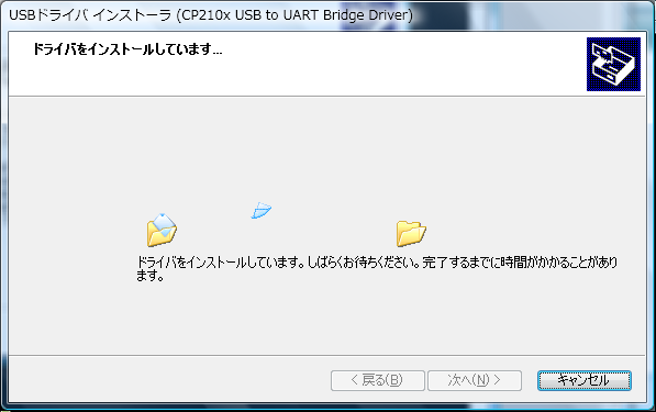 USBドライバ(CP210X)のインストールが始まります。画面の指示に従い、インストールを完了してください。